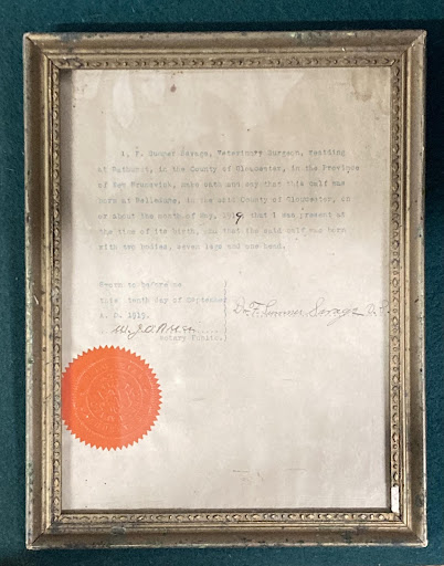 The calf was born in Belledune, New Brunswick in 1919 and has a certificate of authenticity that